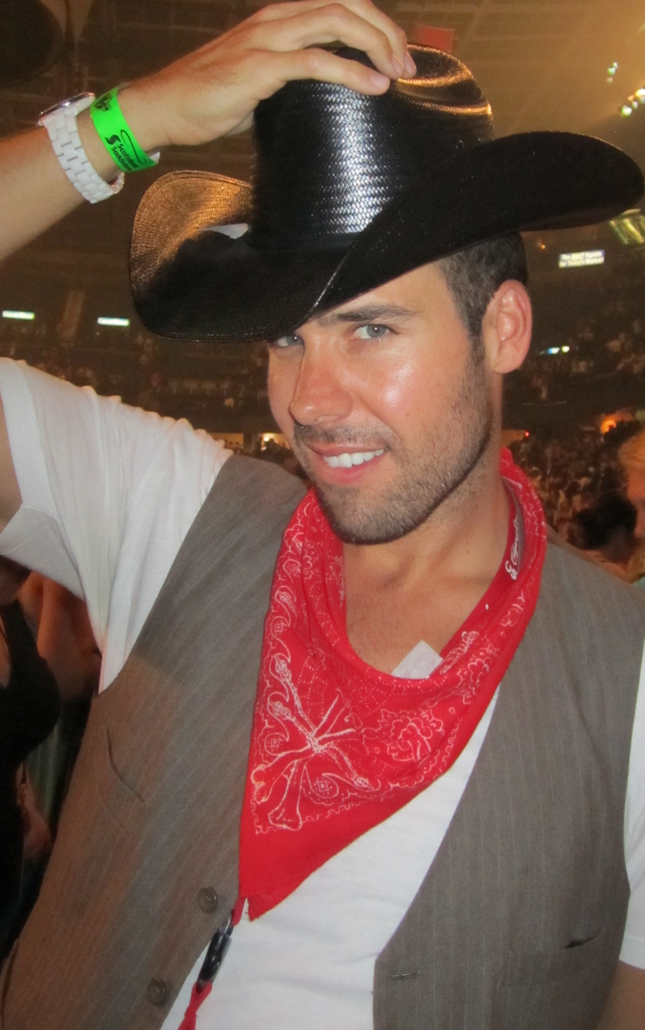 If that wasn’t enough to send me into a mild cardiac arrest, as the show was coming to a close, AJ takes off his cowboy hat and tosses it in my direction. Now I have never pulled a girls hair and as tempting as it was, I remained full of class and didn’t snatch the hat. I was thrilled though that she let me wear it for a bit…sweat and all.