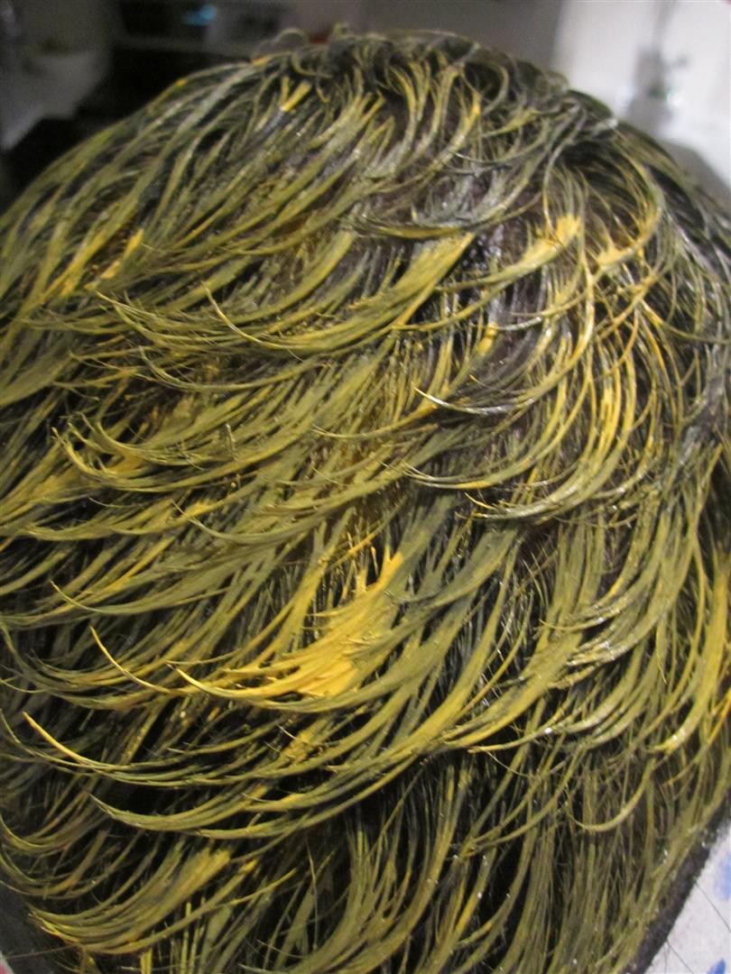 Coat after coat of black lacquer was applied to my hair, and just when it started to look like plastic, it was highlighted with some yellow.