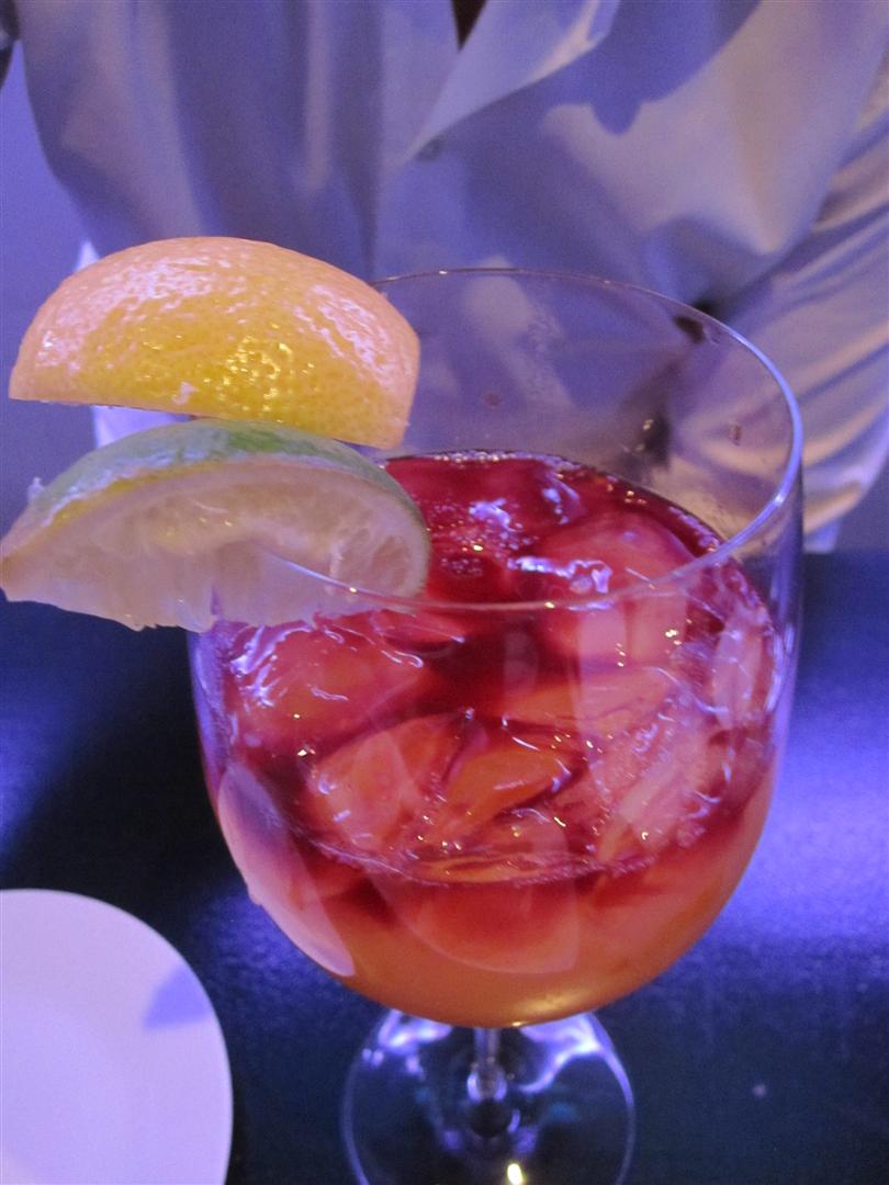 The Mona Sangria (3oz – $11) Malibu, Banana Liquour, Soho Liqour, orange and pineapple juice with a splash of Red Wine