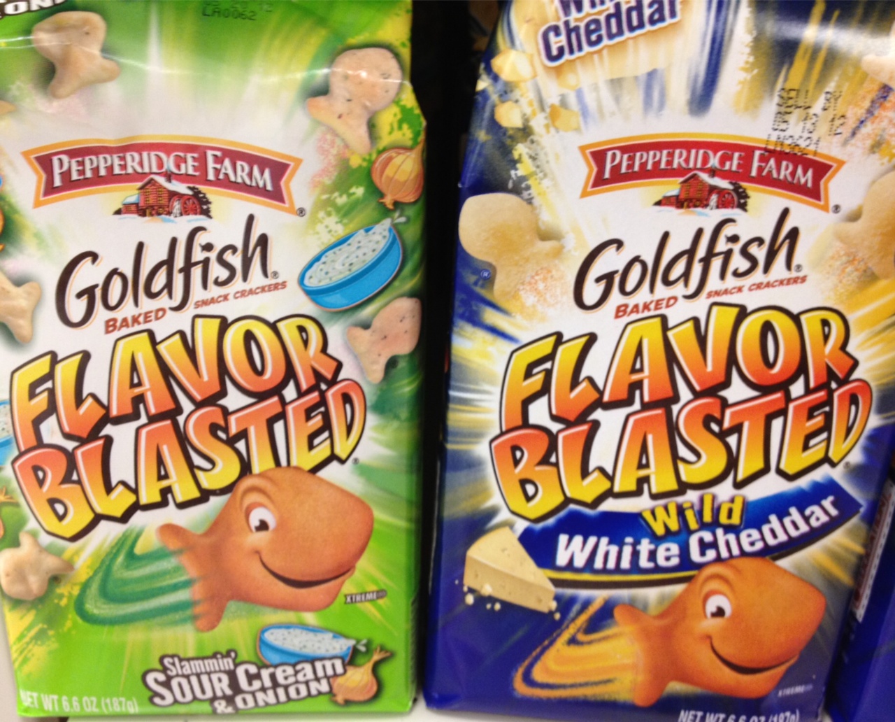Now the last time I had Goldfish, they were cheese; salty and orange, they were a classic cracker with a addicting taste.