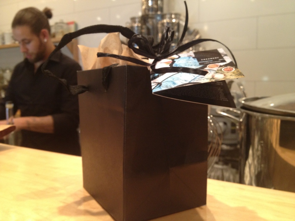 Then Chef V scooped and sealed it into a beautiful glass apothecary jar. As she wrapped my delicate treasure I prepared myself for the worst: the total!