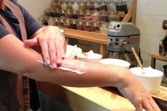 After I chose a ‘Single Whipped Butter’ a custom blended cream that would suit my skins needs, I whipped it till it was fluffy and the time came to custom scent it.