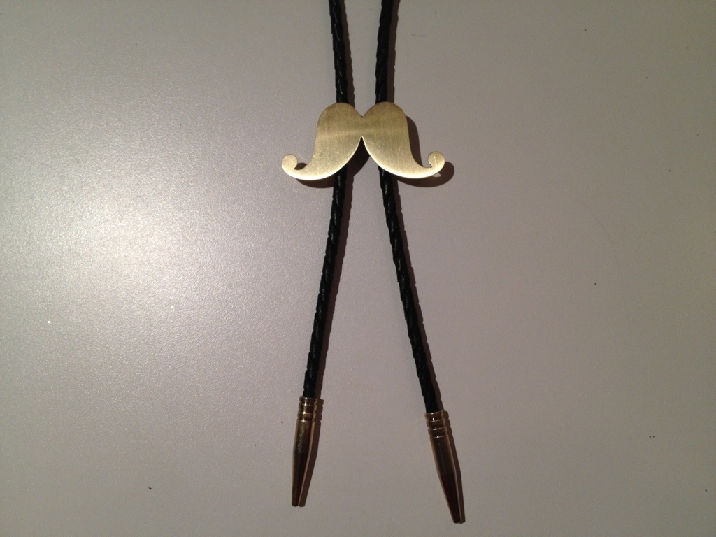 A traditional Bolo tie with a cool Texan moustache, complimented with leather and bullet inspired ends! The tie, along with other great products will be released for purchase mid November.