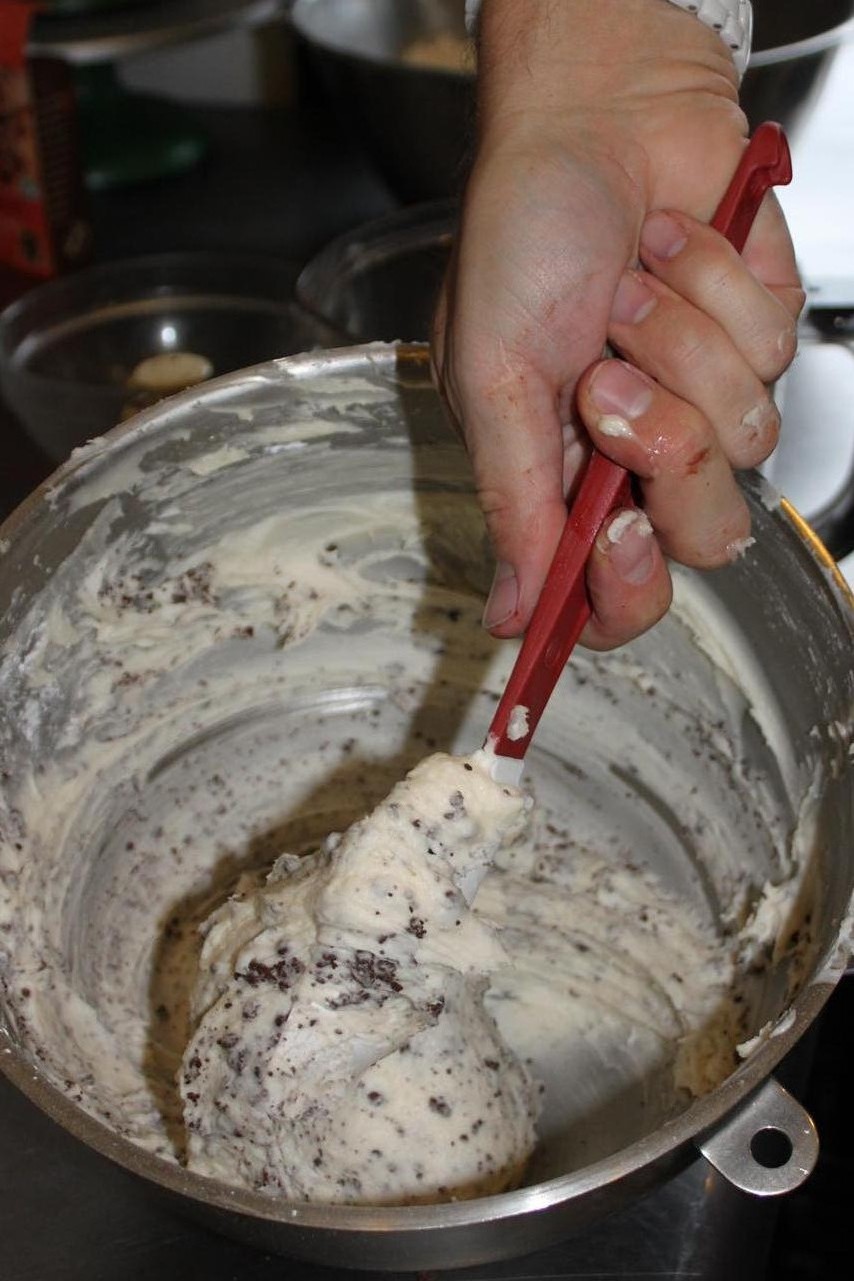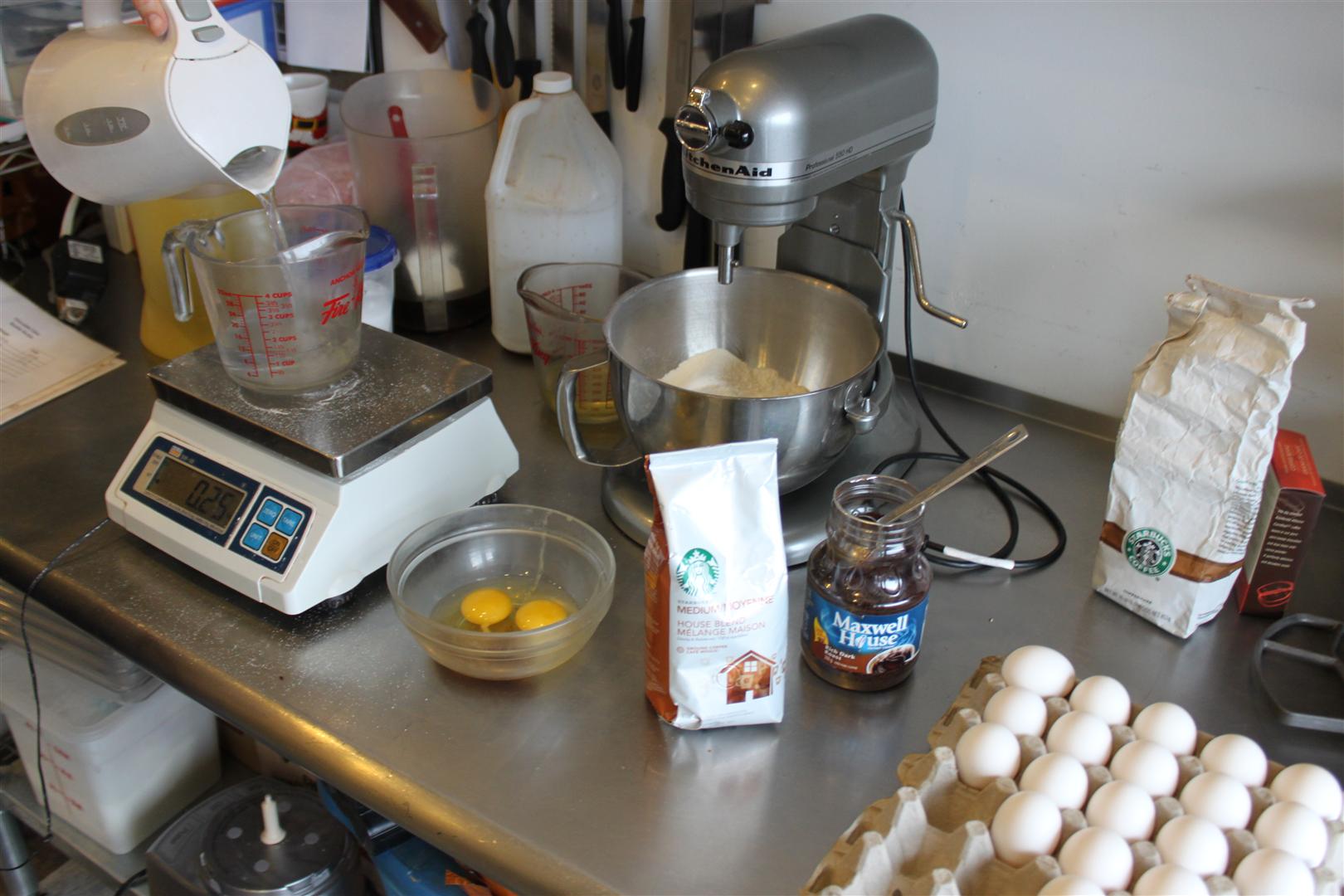 With food processor on hand, a selection of ground coffee, and chocolate covered and roasted whole beans, several batches of unique buttercreams were produced.