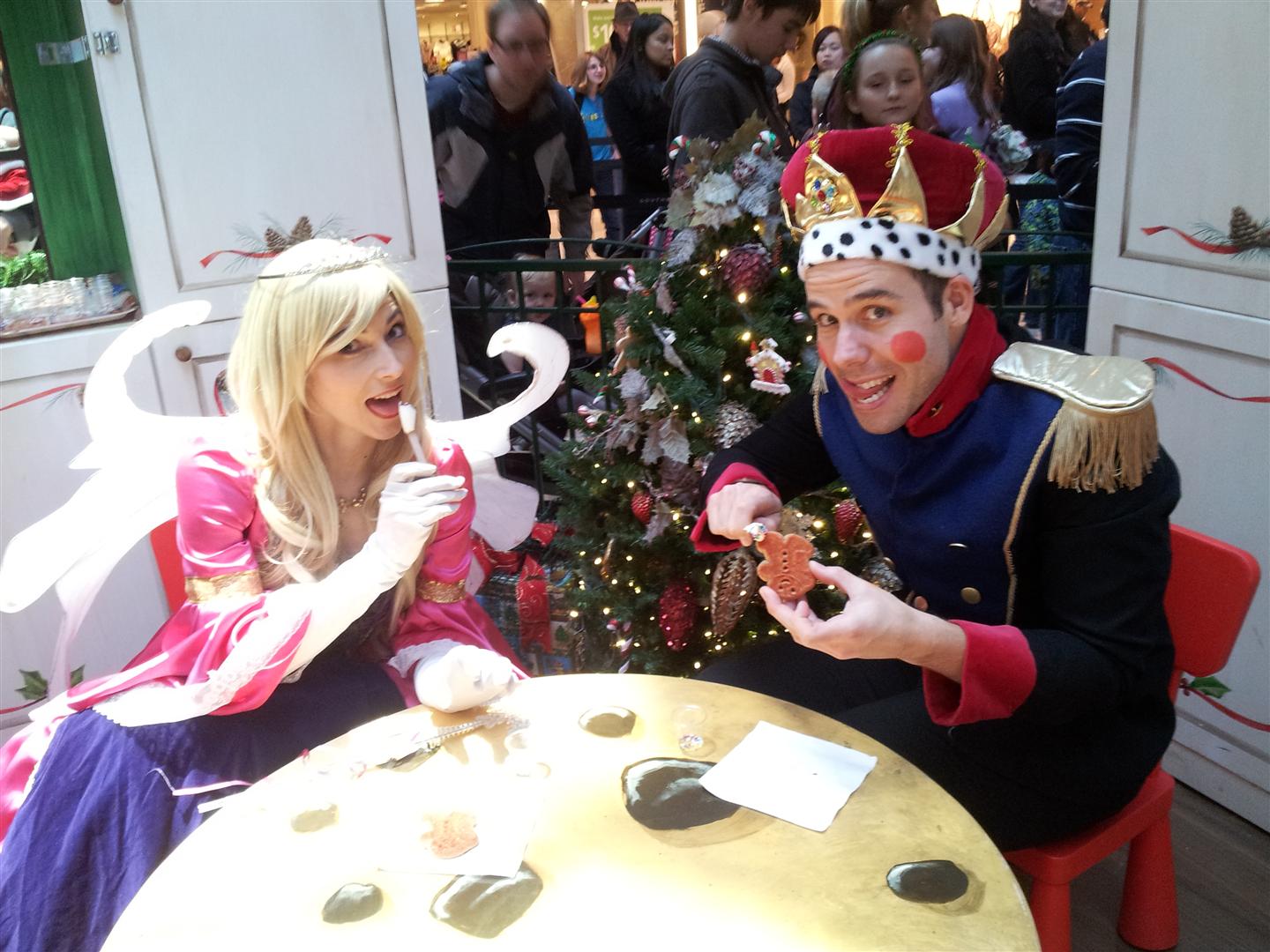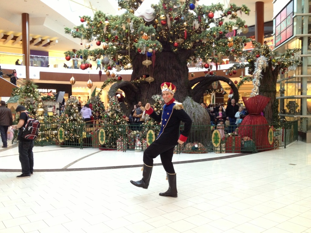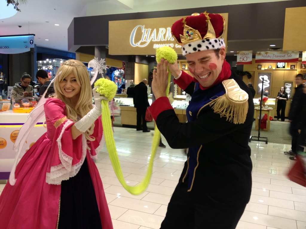 The request was simple, don a suit, paint on rosy cheeks, then top it off with a crown and march through the mall doing what I do best;