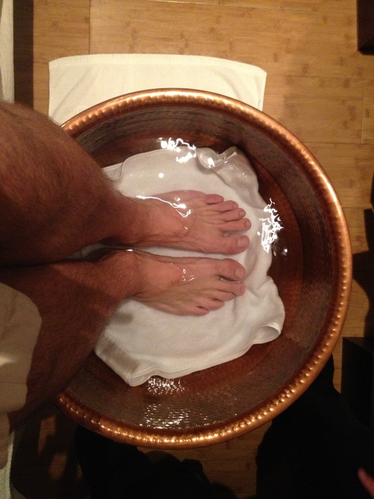 She started on the left and moved on to the right. When the first foot was fully de-stressed, it was tightly wrapped in a hot towel. Like a snugly cocoon, I was certain my tootsies would come out butterflies!