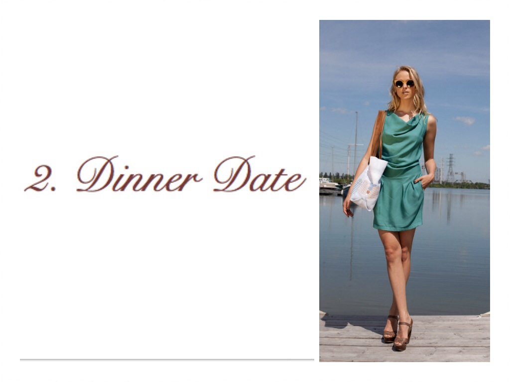 2. The Dinner Date: a feminine jersey cocktail number. “Supper and drinks at Le Chien Fumant, straight after work? I can make that work!”