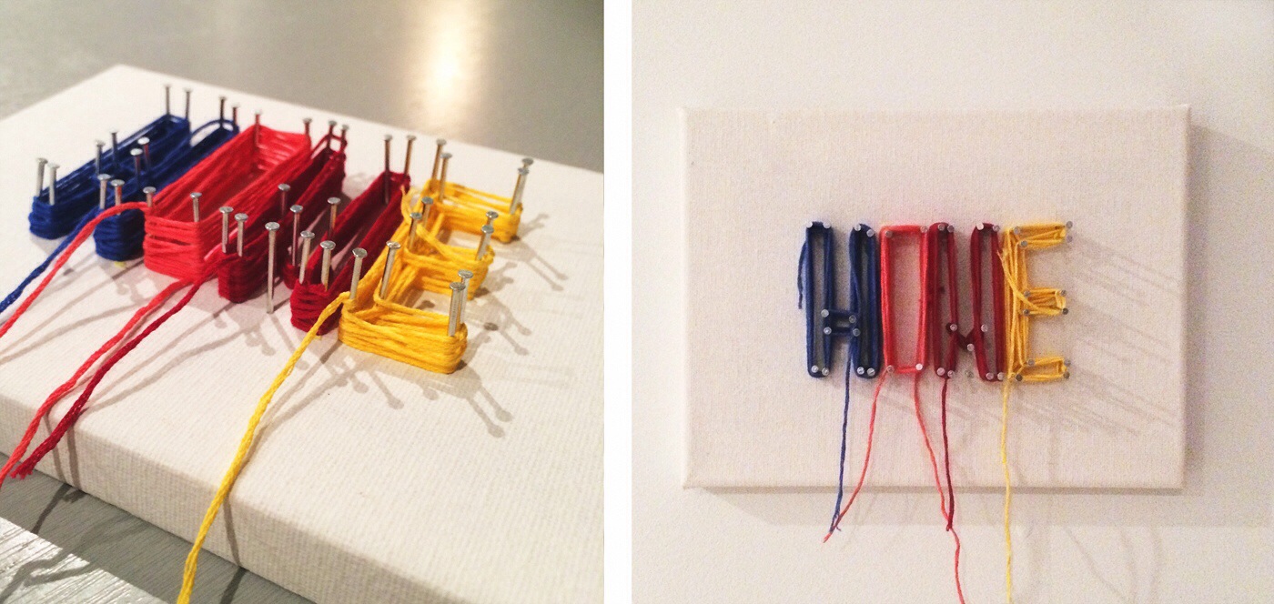 I love anything crafty, like this 3-D picture I made with a canvas, nails and embroidery thread.