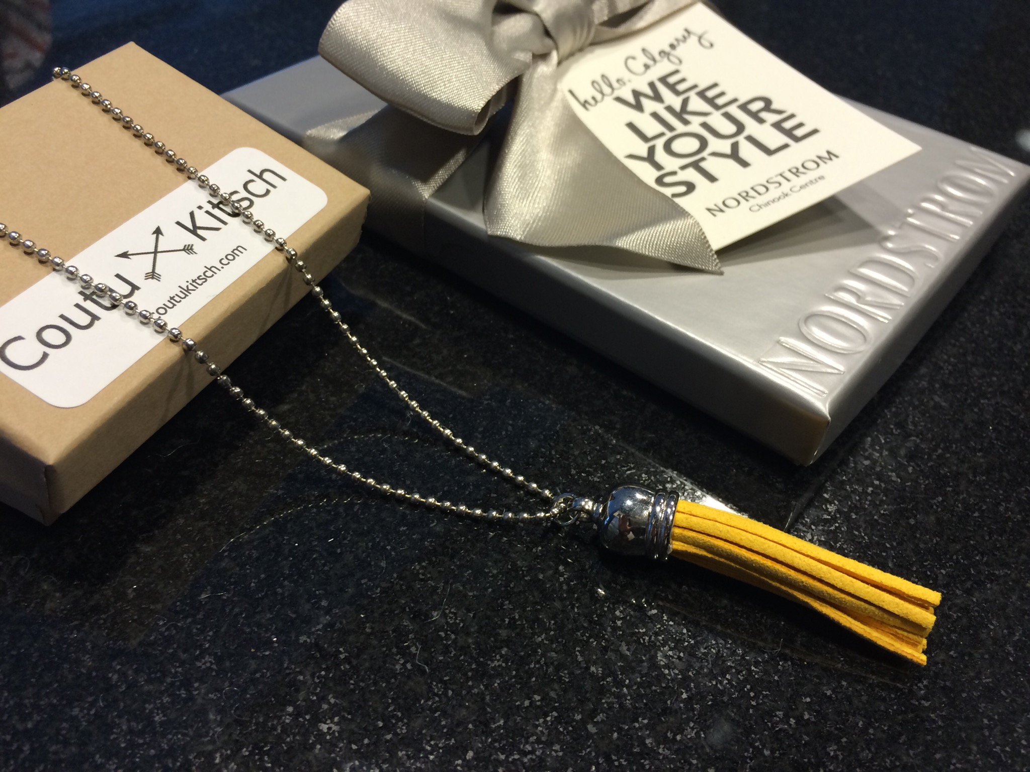 This year, in addition to the delicious chocolates sponsored by East Village, I was delighted to find a great unisex necklace from Dorian Kitsch (@CoutuKitsch) and a very generous gift card from the newly opened Nordstrom!