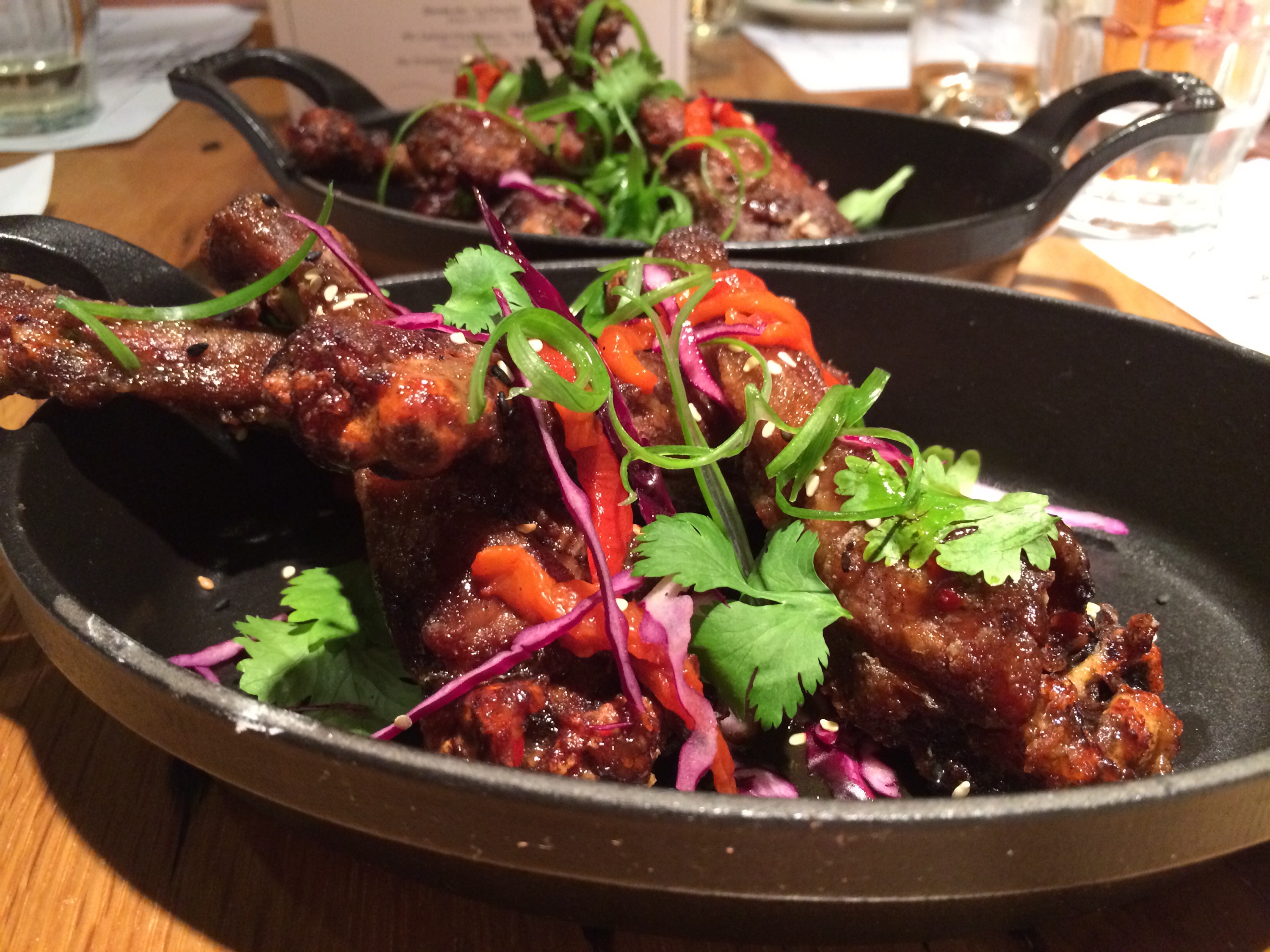 Crispy Duck Wings with a ‘habit forming’ sweet chili glaze.