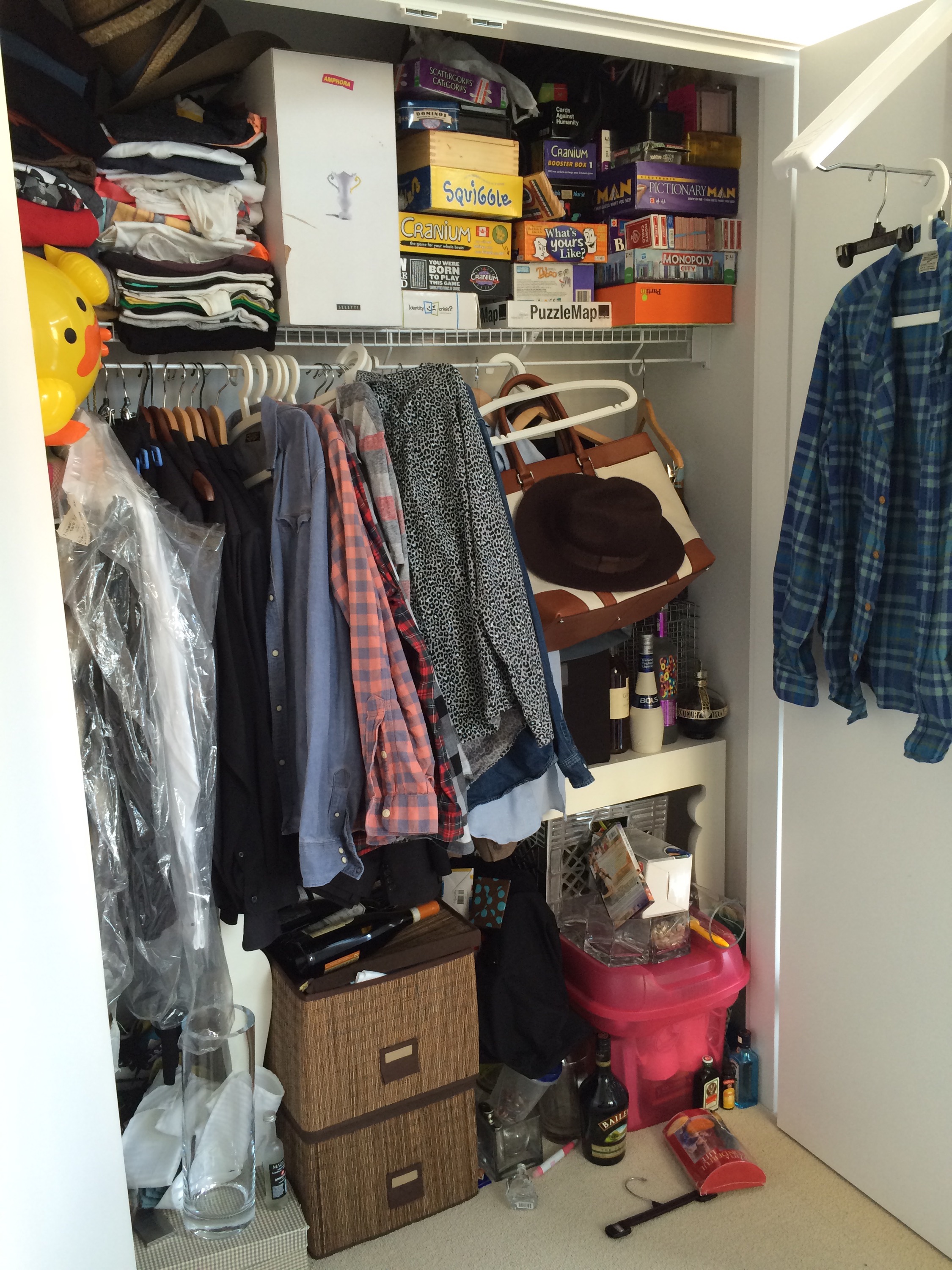 A huge junky mess that had me telling my house guests to “Stay out of the closet!”