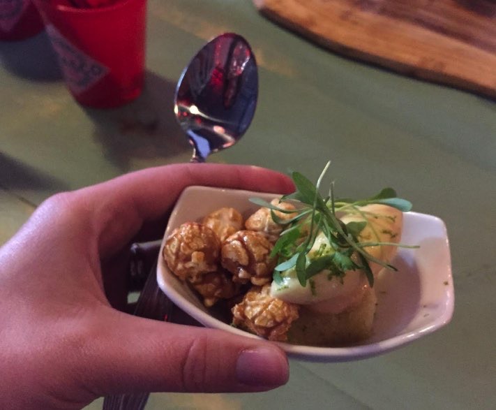 At first you’re like ‘Oh yum, caramel corn’. Then the heat hits you like a Mac truck and thank goodness for the cooling corn ice-cream of dreams.