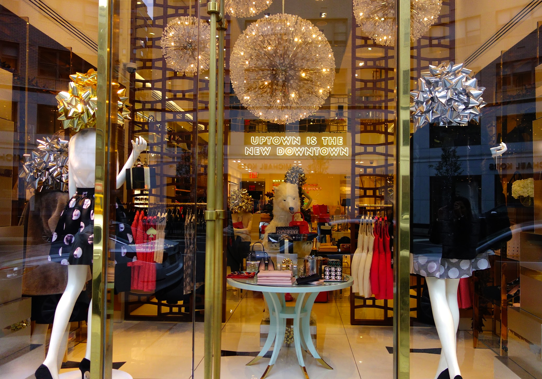 Kate Spade has rotating mannequins with giant bows for heads.