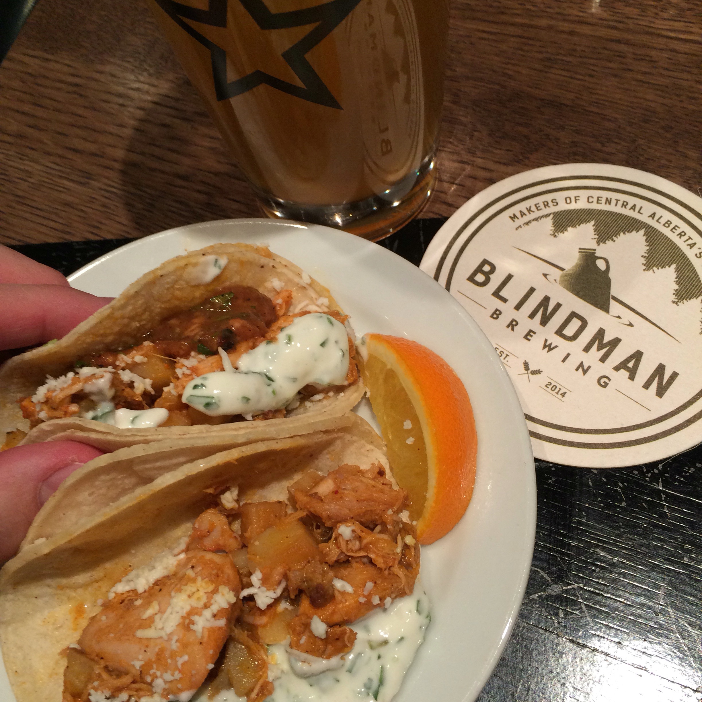 First Course; Beer Braised Chicken Tacos paired with Blindman Brewing’s River Session Ale