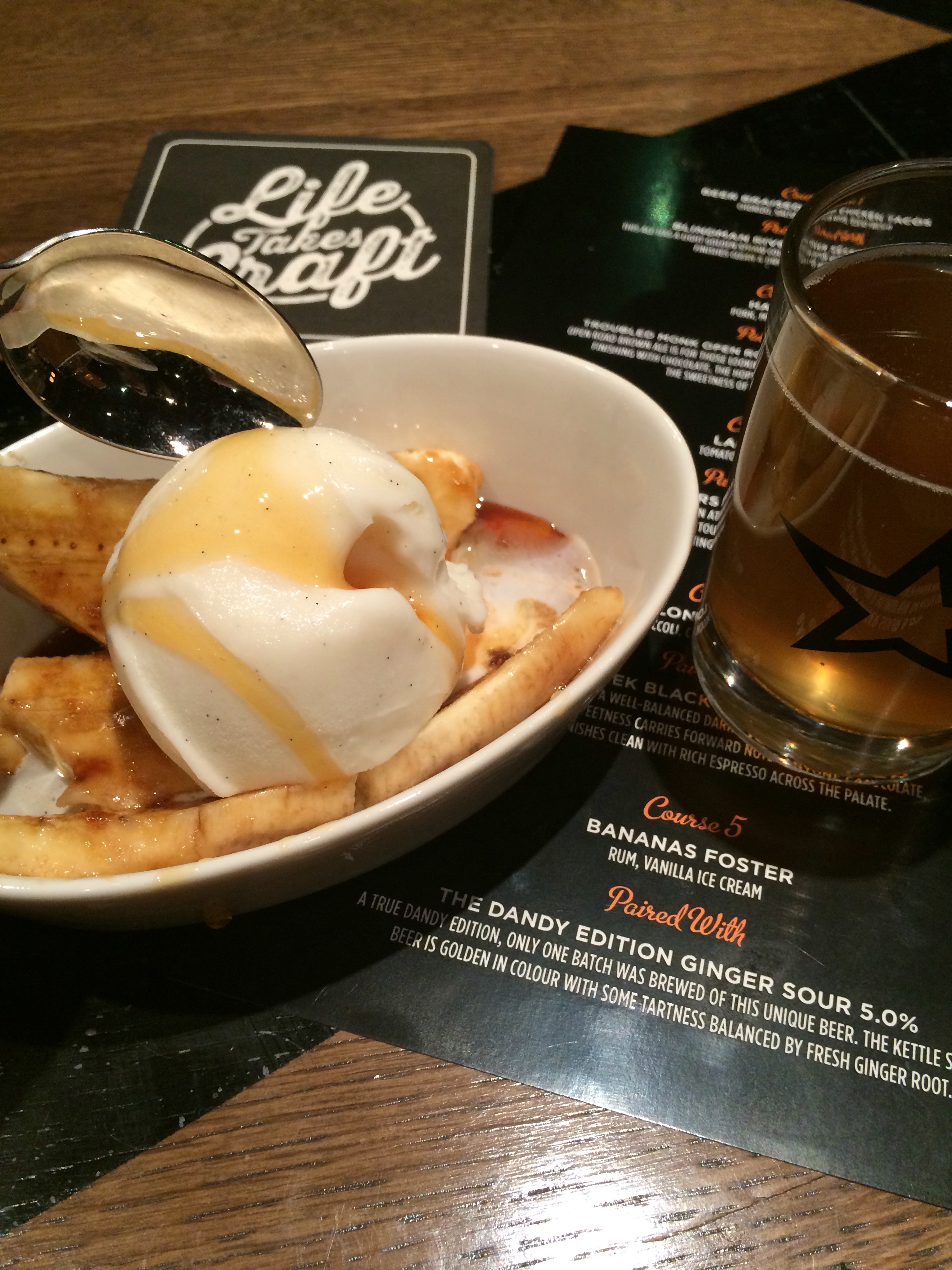 Fifth (and final) Course; Bananas Foster paired with The Dandy Edition’s Ginger Sour.