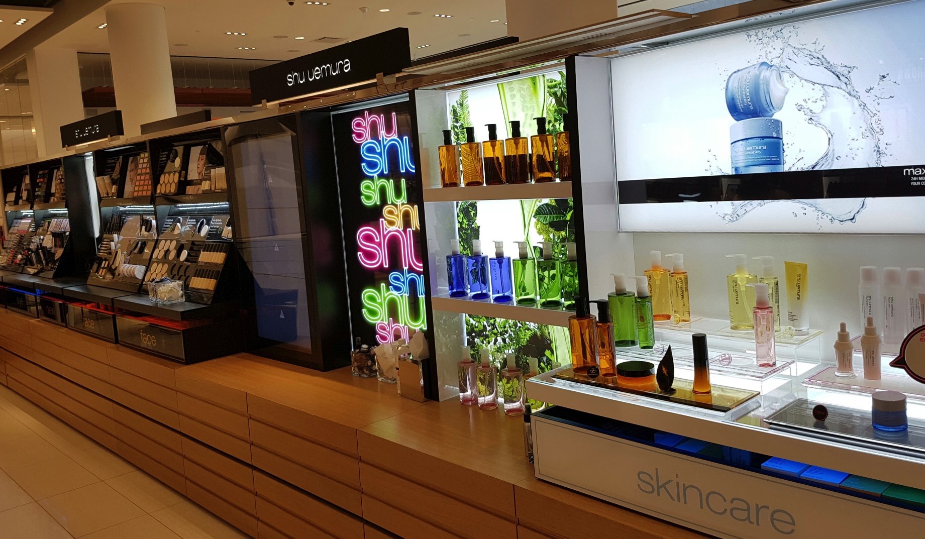 This wall carries cult favourite and hard-to-finds like Lipstick Queen, Kevyn Aucoin, Eve Lom and Terry.