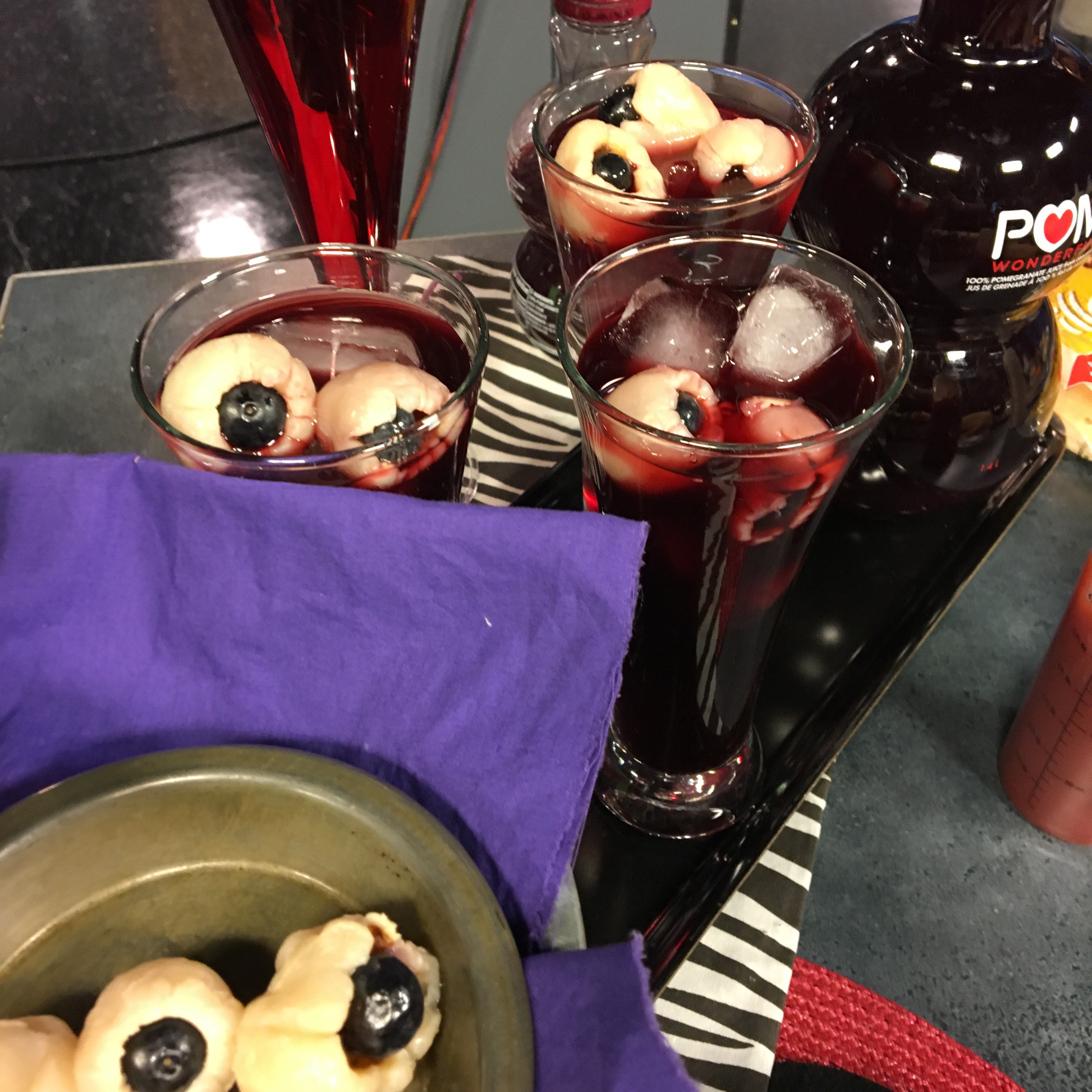 And these super healthy Pom Martinis garnished with Lycee Blueberry ‘Eyeballs’!