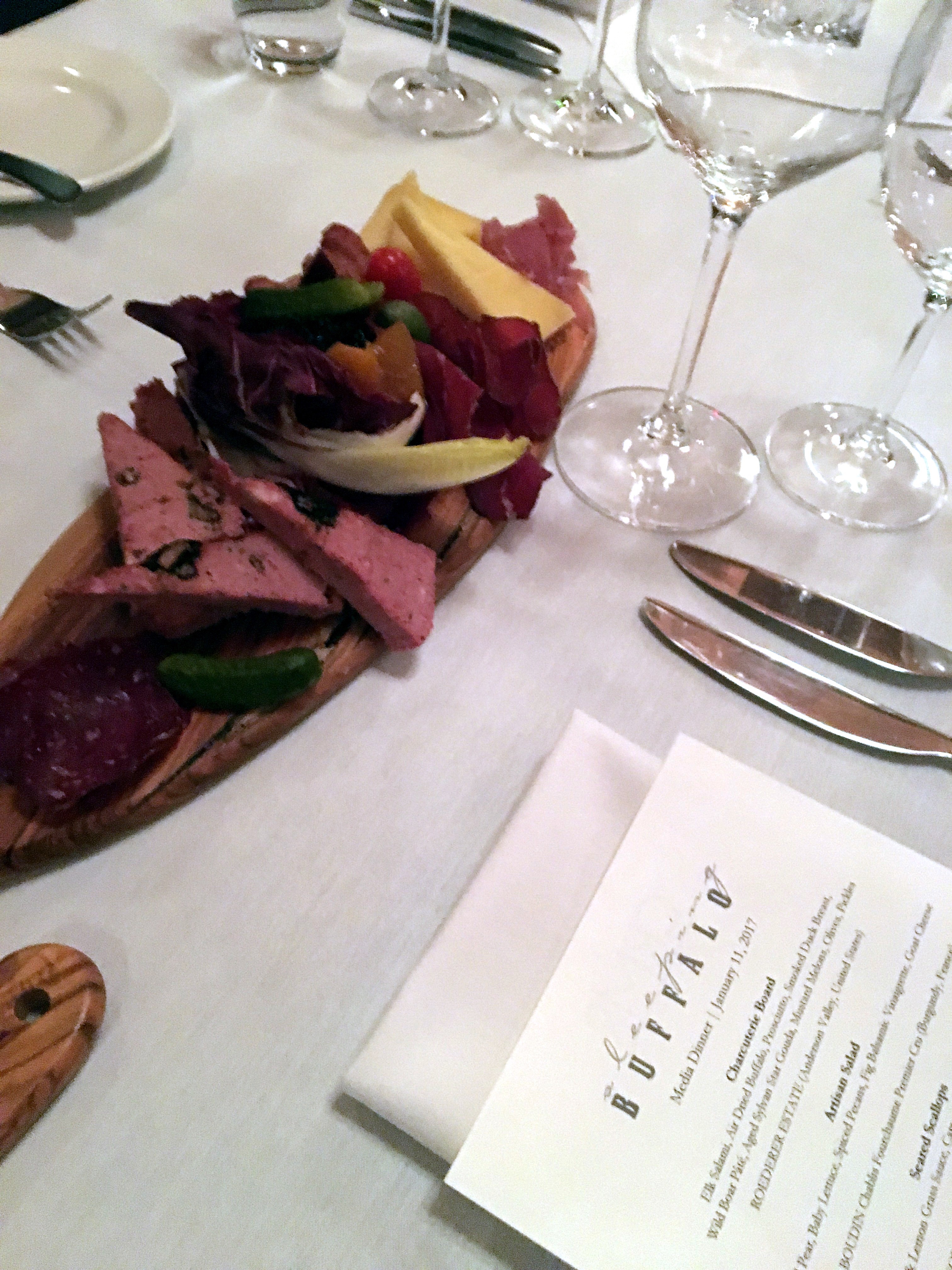 We started with a Charcuterie Board filled with impressive local, house-made offerings like Elk Salami, Air-Dried Buffalo, Smoked Duck Breast, Wild Boar Pate, Aged Sylvan Star Gouda, Mustard Melons, Olives & Pickles.
