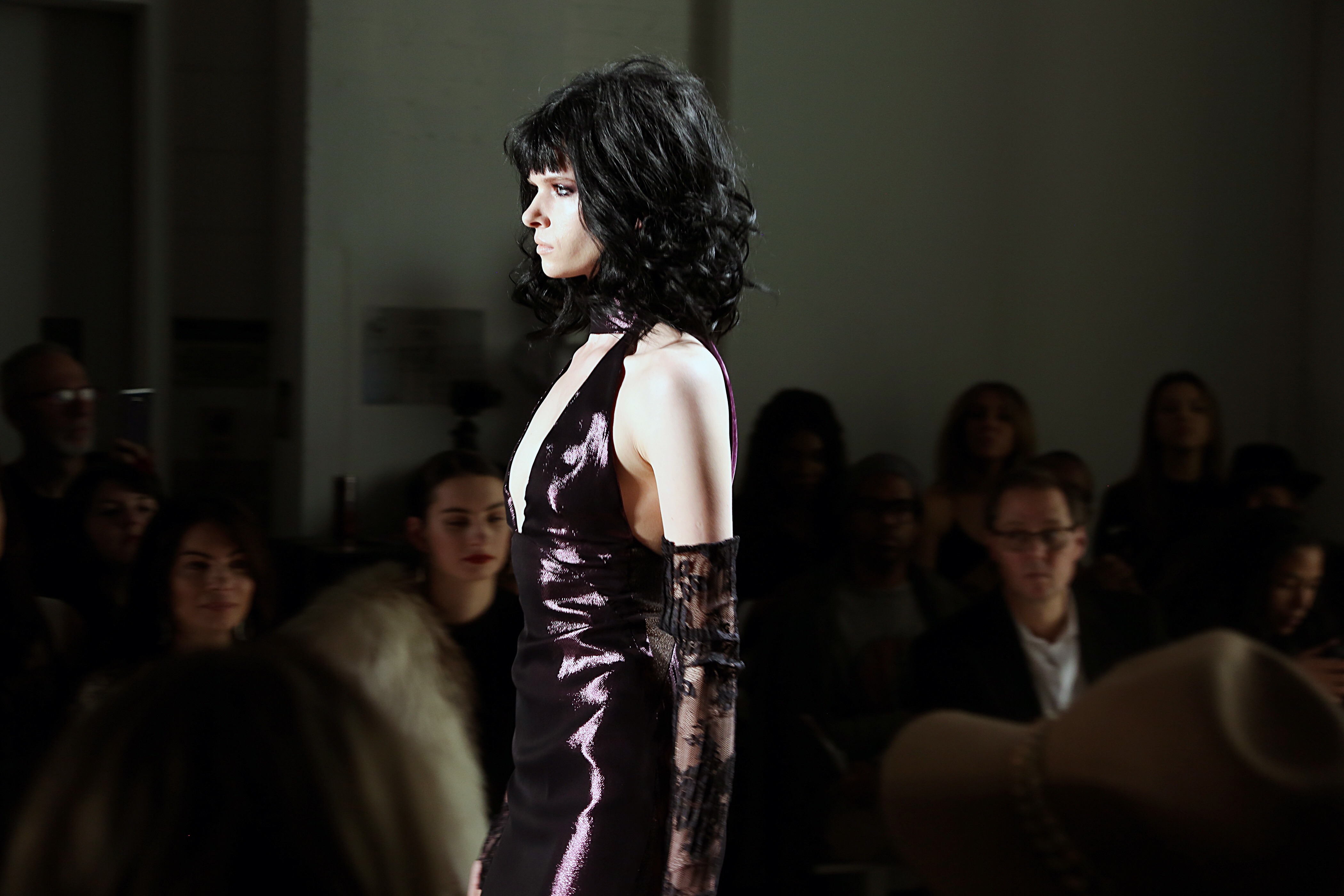 Backstage, after dodging the busy hair designers, who were meticulously fitting each model with sheik sleek black wig and weaving between the M.A.C makeup artists who were creating deep smokey eyes, I found myself in “Another Dimension, Another Time, Another Planet… I had arrived at Suite 339.”