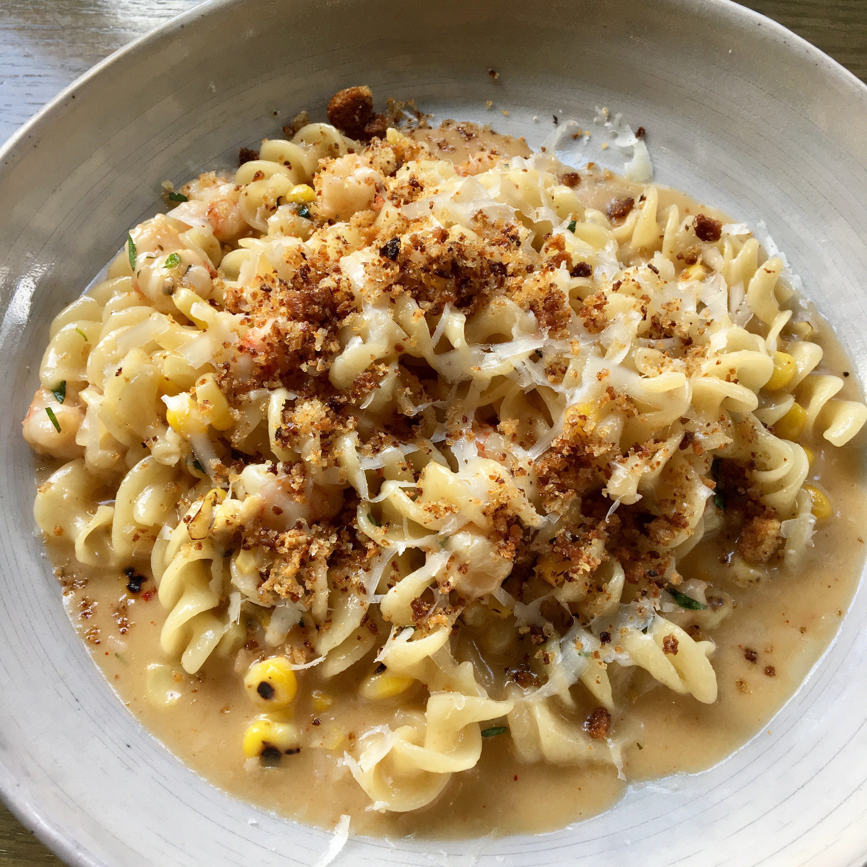 Sweet Corn and Shrimp Fusilli Pasta