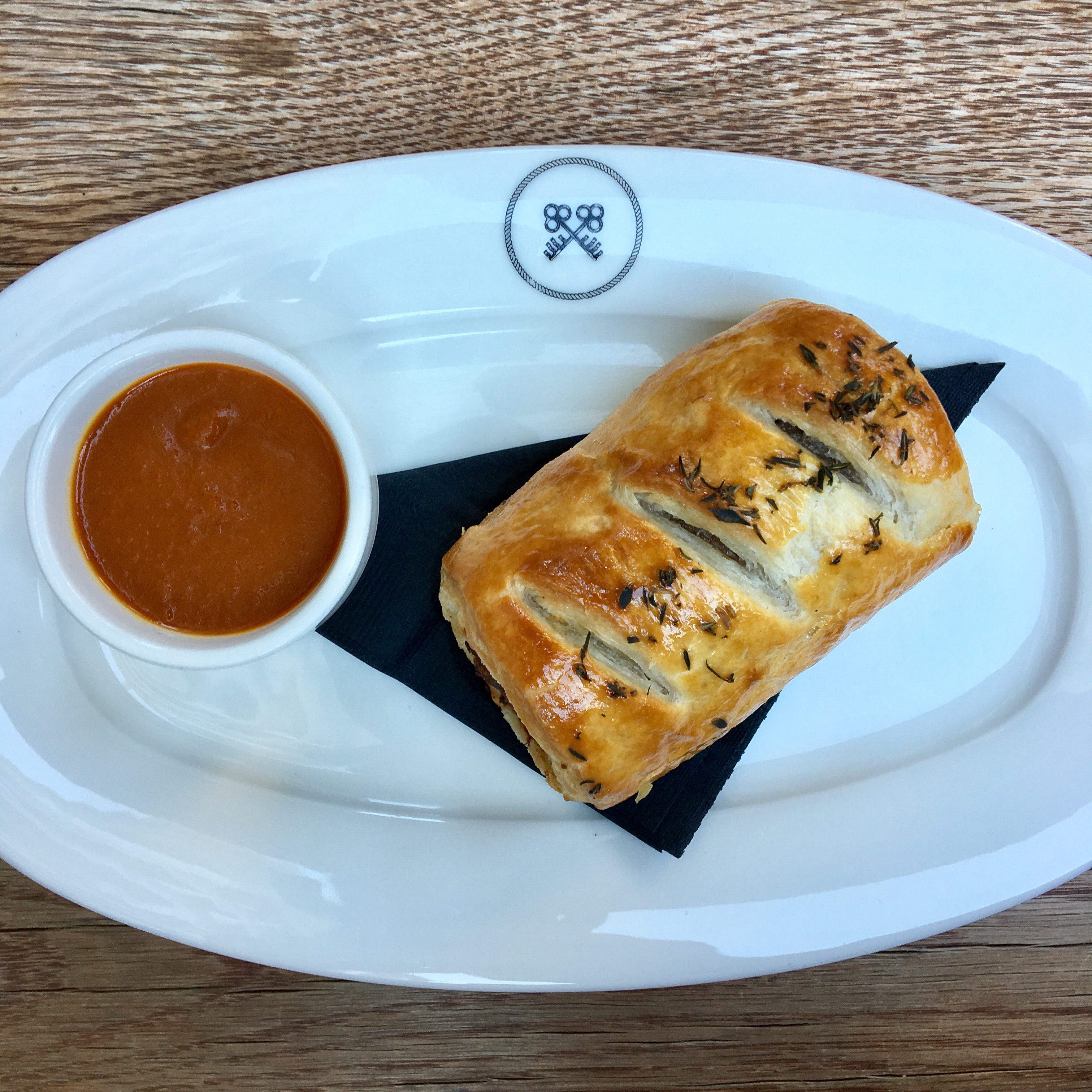 Housemade sausage, pie dough, smoked sea salt, cherry HP sauce