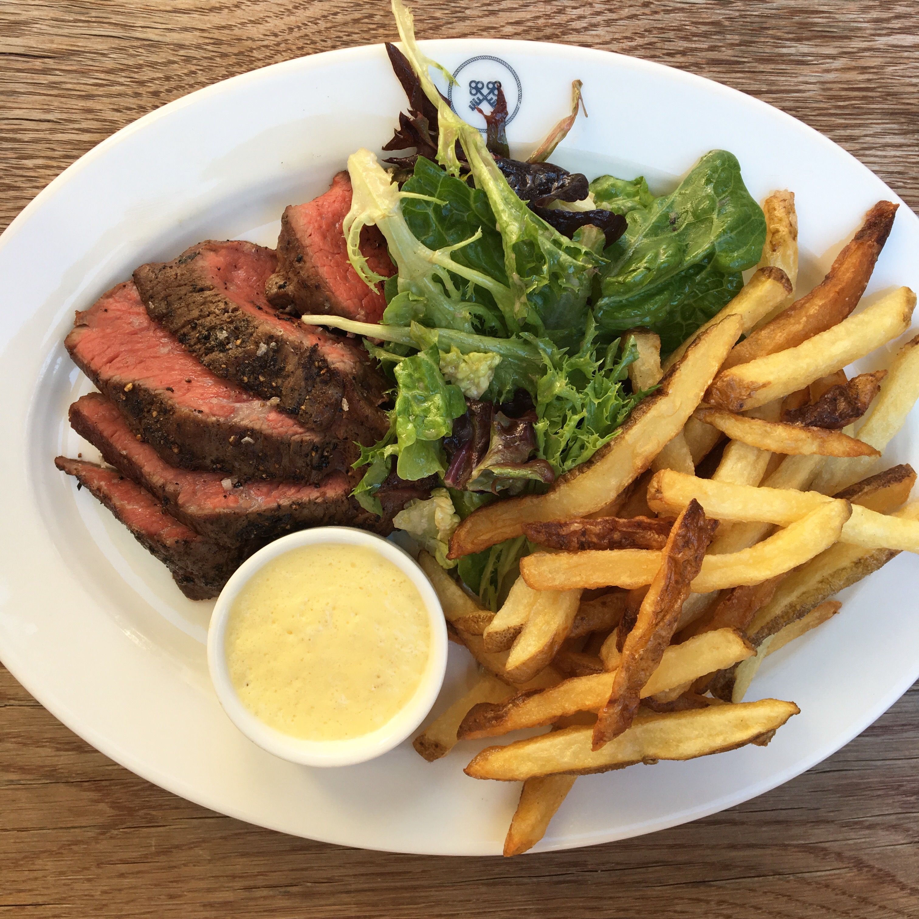 7oz tri-tip steak, house cut chips, summer greens with a side of bearnaise sauce.