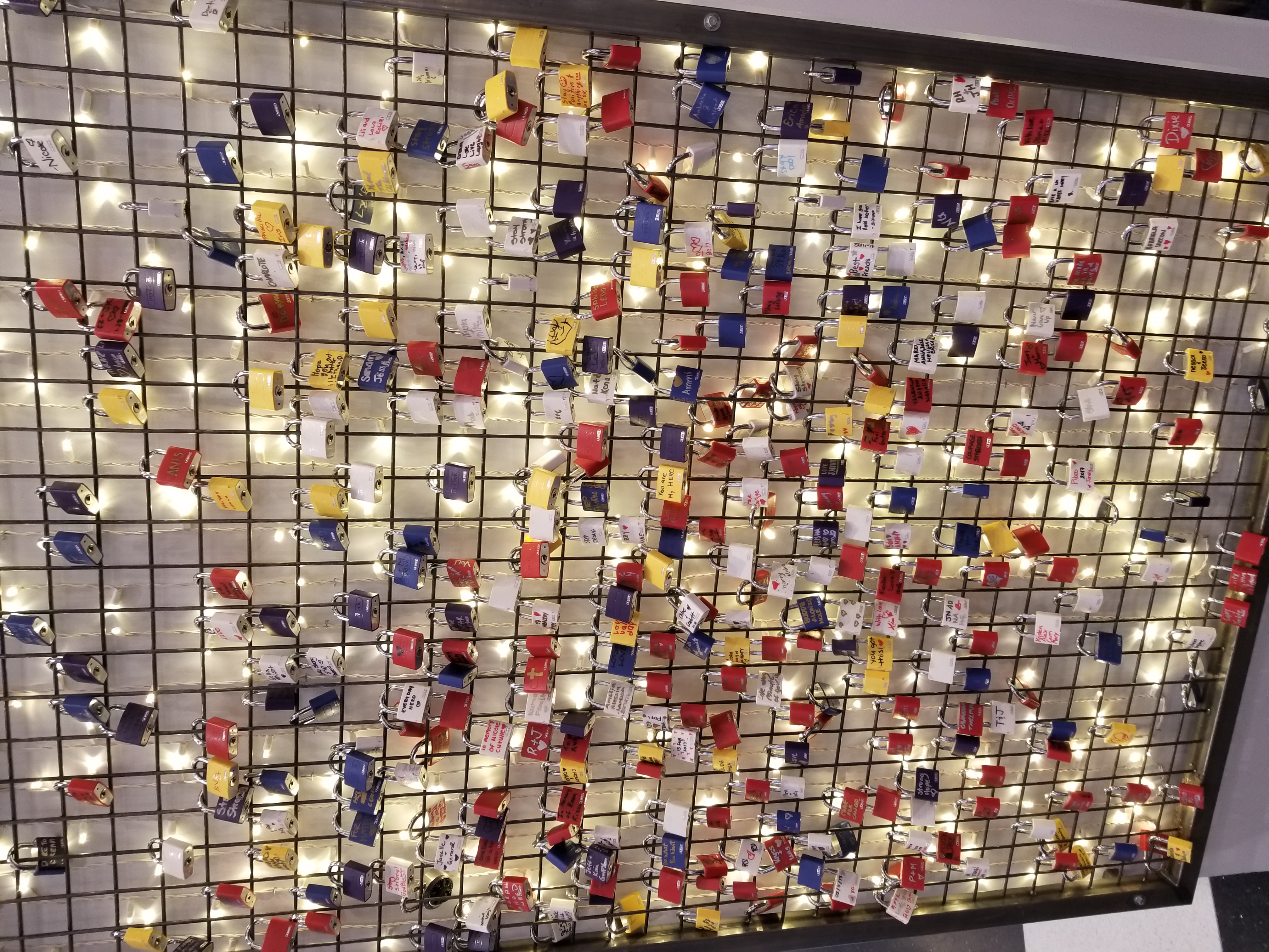 Shoppers who purchase a lock have the opportunity to dedicate the lock to a loved one before placing it on the wall. In return you receive a lovely commemorative necklace. This necklace can either be worn or given to your loved one as a symbol of the donation made in their name. There are also craft stations where you can customize gloves, hats and notebooks.