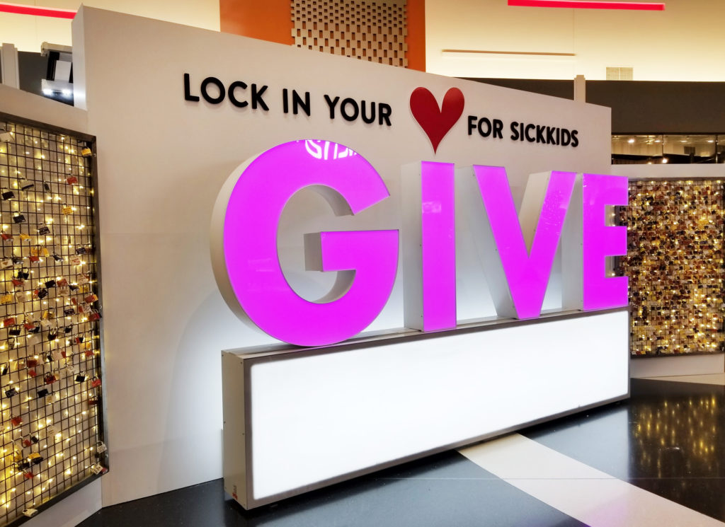 For every ‘love lock’ purchased, 100% of the proceeds go directly towards SickKids as part of their ‘GIVE’ campaign.