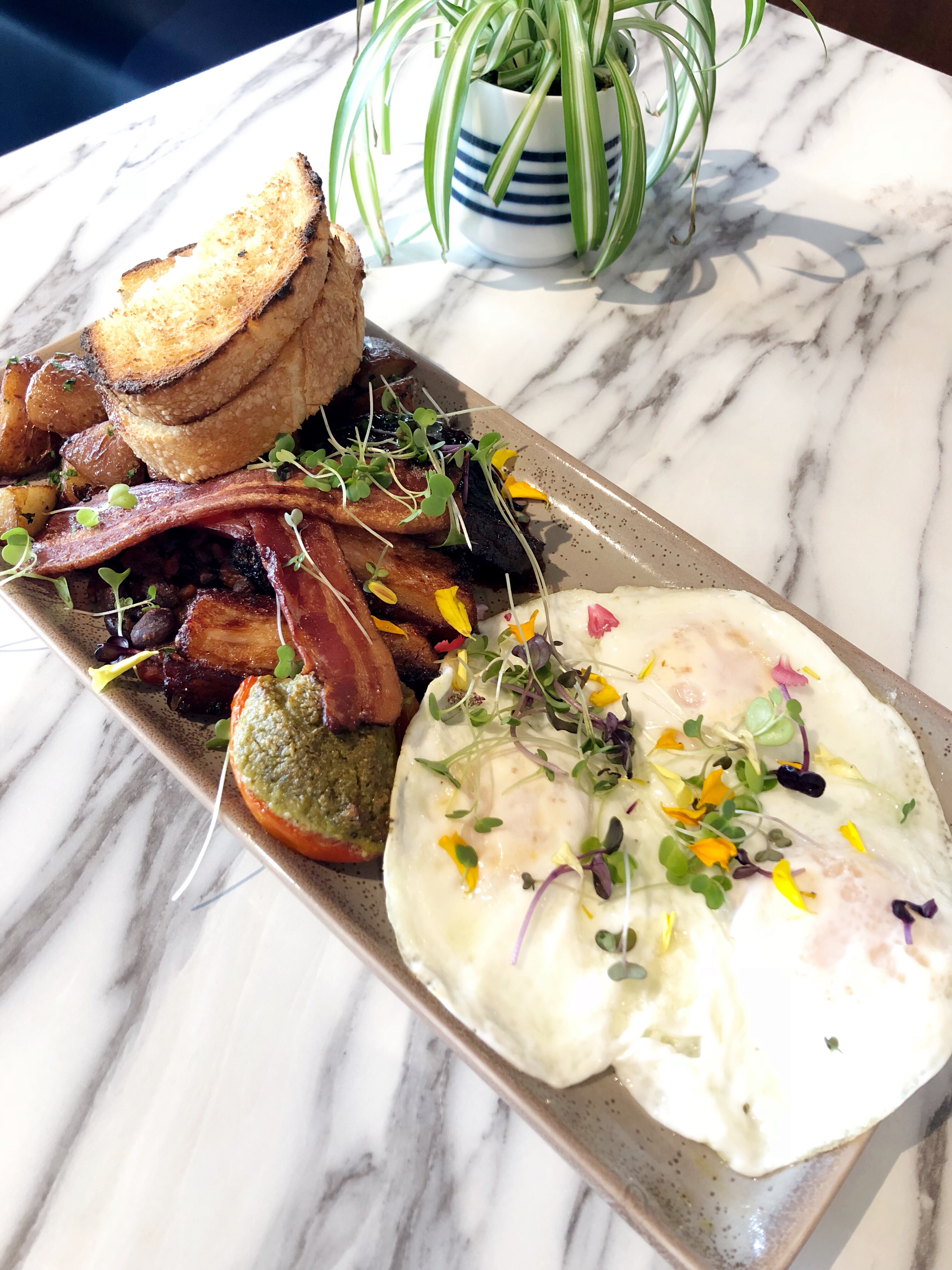 Not to mention sourdough toast, spiced black bean ragout, cashew pesto roasted roma and herbed hash!