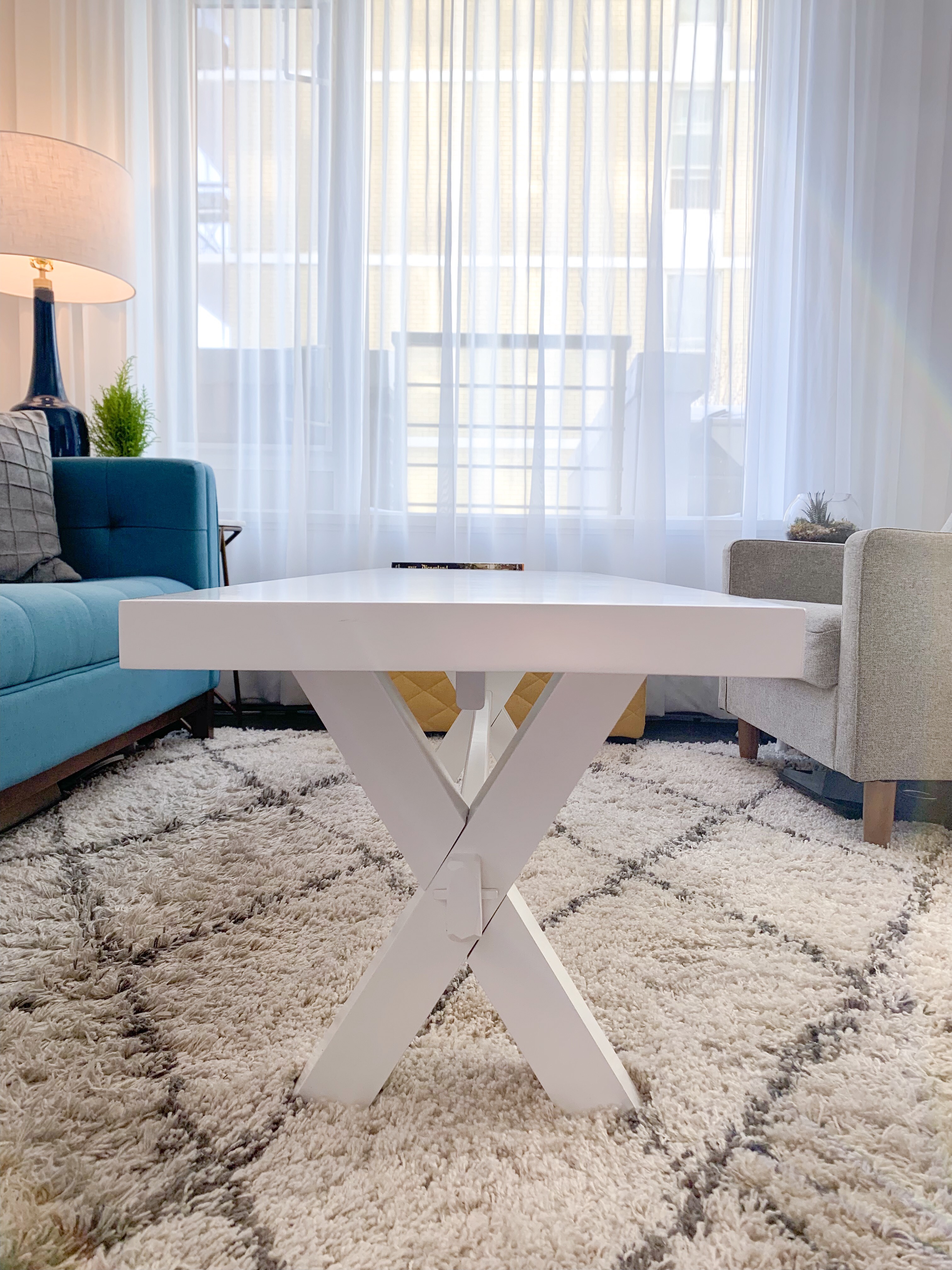 Wallpaper, furniture and beautiful decor, the transformation was fresh and exciting… All but one thing: a hideous coffee table that was to be a ‘temporary’ solution…