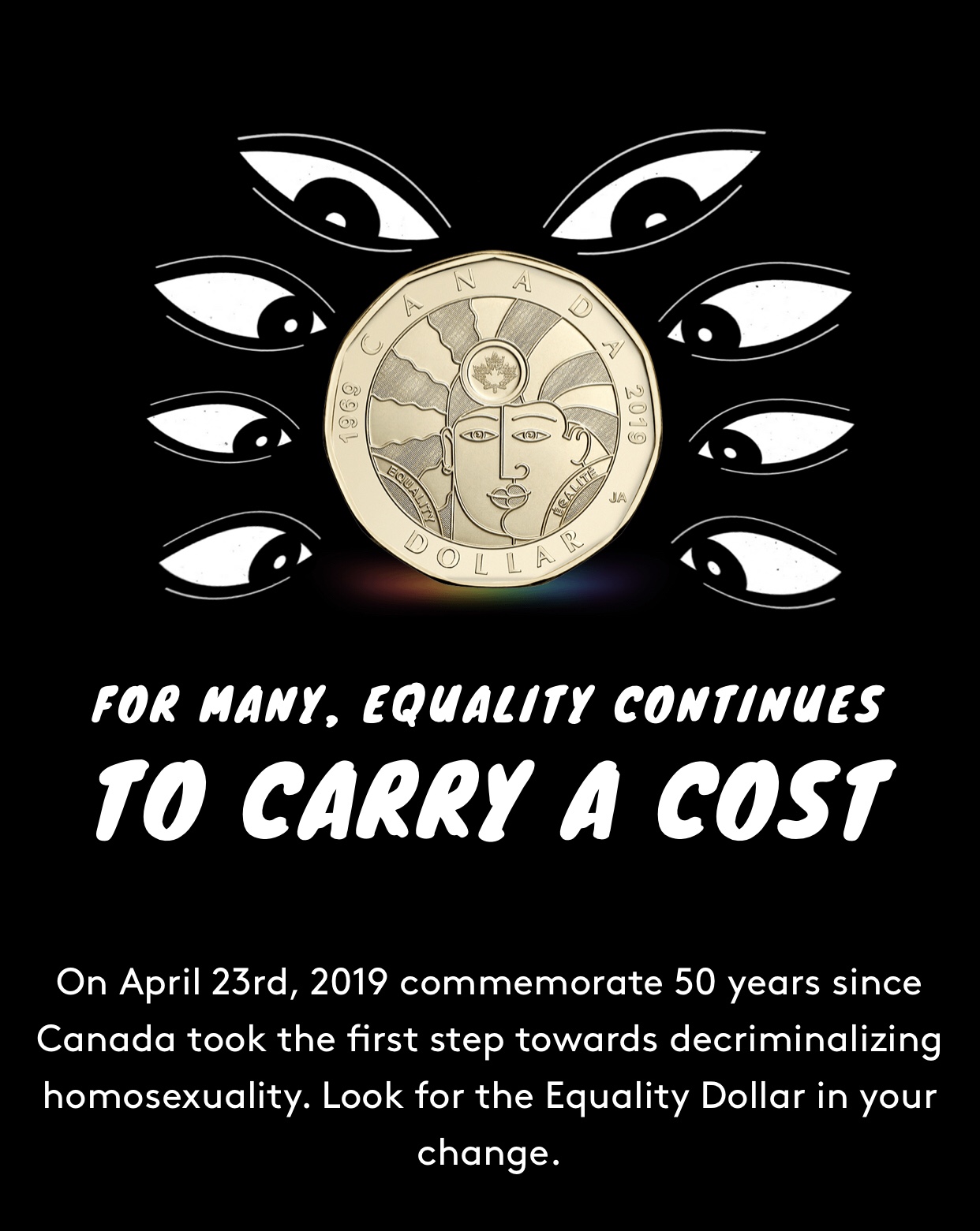 Today the Royal Canadian Mint released the “Fight for the Right to LoveEquality Coin into circulation which marks 50 years since the process of decriminalizing homosexual acts was initiated in Canada. โค๏ธ๐Ÿงก๐Ÿ’›๐Ÿ’š๐Ÿ’™๐Ÿ’œ