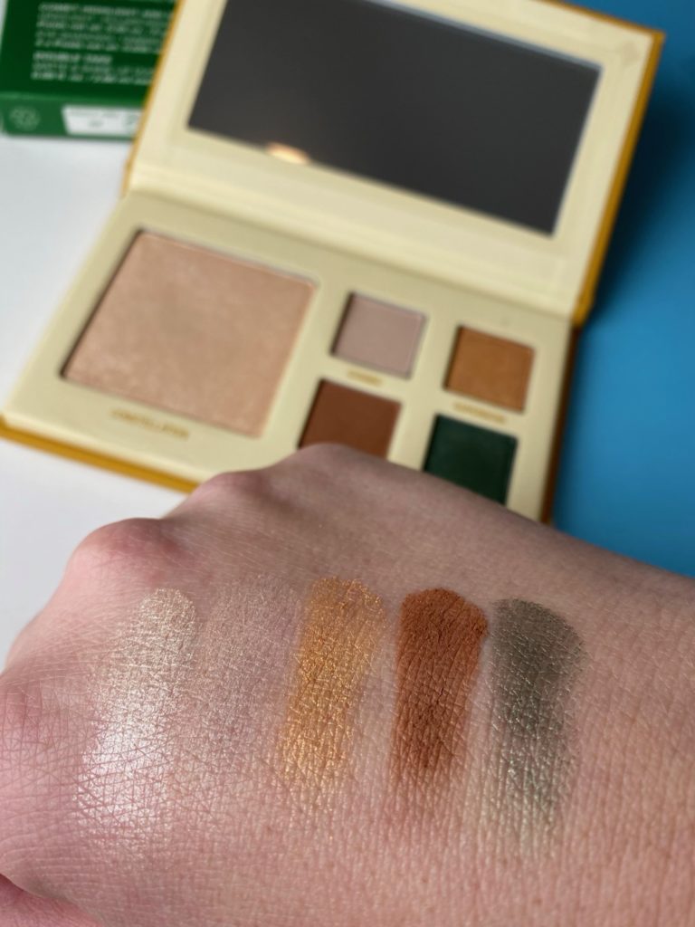The face palette comes with four eyeshadow shades and one illuminating powder – in the shade, Constellation. You will be able to create so many looks with this palette from dark and dressy for New Years Eve to light and neutral for Christmas brunch.