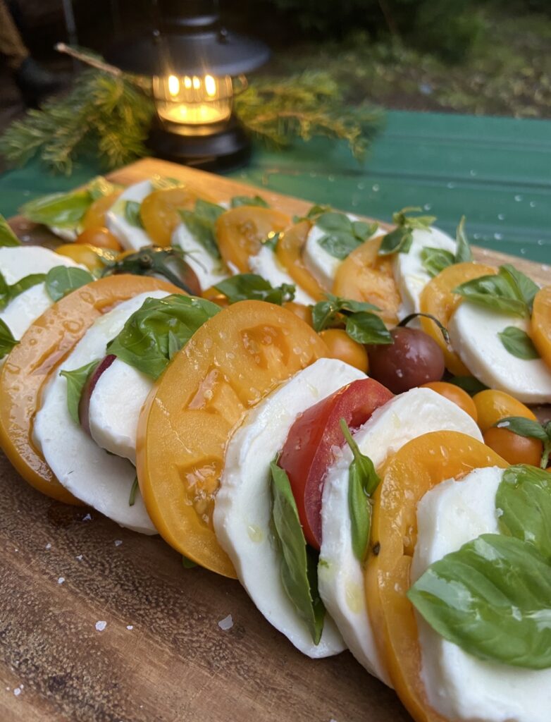 Our leader, Camp Daddy 1 as I lovingly referred to him as, had broken from the pack a few hours early and sprinted to camp, completing the set up and prepared a delicious appetizer to greet us with. Using locally foraged ingredients from his garden, he flexed his skills by not only creating a perfect bite, but he also shook up a custom cocktail using grapes that he had also grown.
